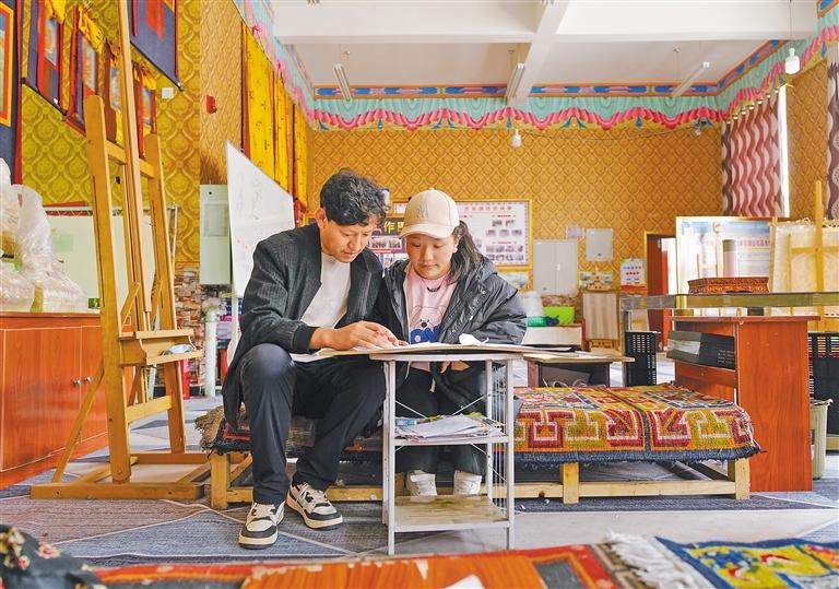 圖為昌都市察雅縣香堆鎮(zhèn)非遺扶貧就業(yè)工坊的匠人在指導學徒繪制唐卡。記者 丹增群培 攝