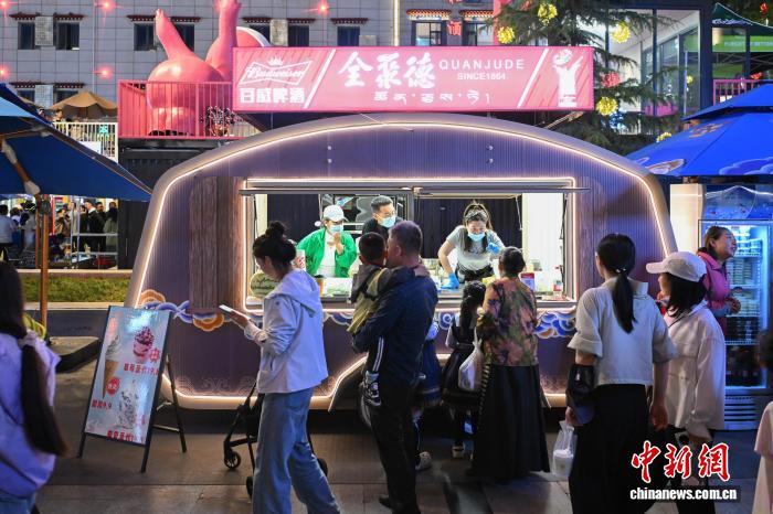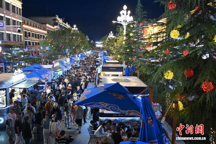 自7月15日開街以來,西藏自治區(qū)拉薩市城關(guān)區(qū)宇拓路370米長的“不夜城”迅速躥紅,每晚吸引近萬名游客與市民。改造后的街區(qū)內(nèi),集裝箱藝術(shù)區(qū)、霓虹餐車矩陣錯落有致,169個攤位熱鬧非凡。藏式牦牛肉燒烤、青稞美食等攤位前排起長隊,唐卡、藏香等文創(chuàng)產(chǎn)品人氣高漲。游客在此既能大快朵頤,也能沉浸式體驗藏地文化,“拉薩不夜城”正點亮高原夏夜,成為展示拉薩魅力的新窗口。中新社記者 貢嘎來松 攝