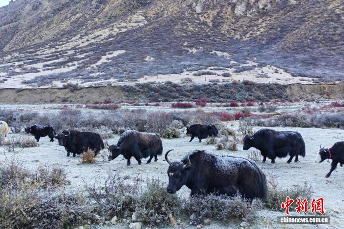 圖為10月16日,西藏那曲市嘉黎縣農(nóng)牧民飼養(yǎng)的牦牛群,牦牛因與農(nóng)牧民生產(chǎn)生活緊密相關(guān),因此被譽為“高原之舟”“全能家畜”。江飛波 攝