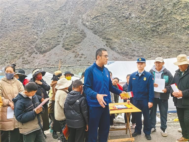 圖為宣傳員在蟲草采挖點向農(nóng)牧民群眾科普消防安全知識。肖暄 攝