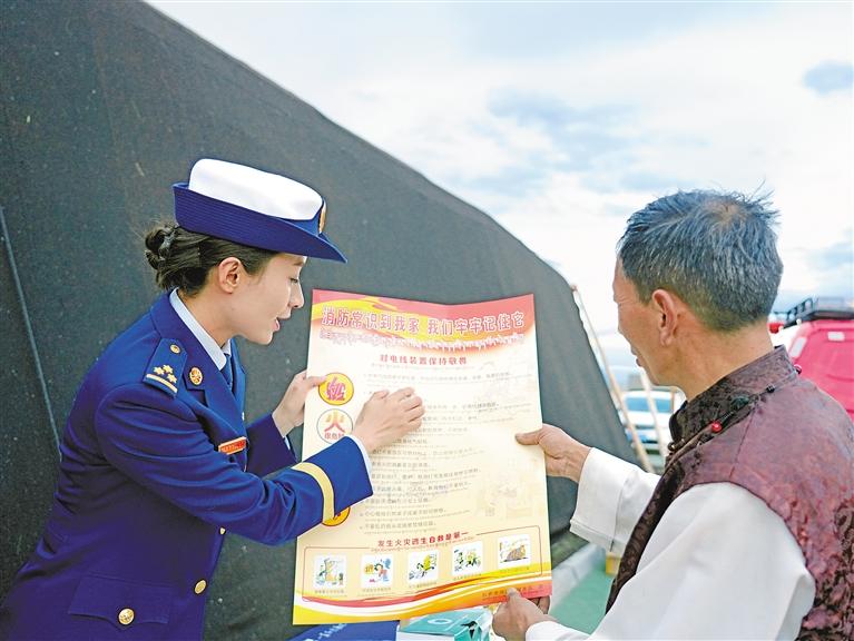 圖為“消防進(jìn)牧區(qū) 家家保平安”主題宣傳活動(dòng)現(xiàn)場。肖暄 攝