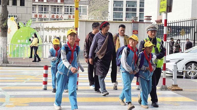此外,拉薩交警還利用每日“護(hù)學(xué)崗”時間,主動引導(dǎo)學(xué)生正確過馬路、認(rèn)識交通信號燈,提醒學(xué)生不在馬路上嬉戲、追逐打鬧,不乘坐三輪摩托車等不規(guī)范車輛,并向接送學(xué)生的家長講解接送孩子途中應(yīng)注意的安全事項(xiàng),告誡學(xué)生家長以身作則,杜絕橫穿馬路、闖紅燈等交通陋習(xí),共同營造安全、暢通、文明和諧的道路交通環(huán)境?!拔覀児膭詈⒆觽儗W(xué)到的交通安全知識帶回家,充分發(fā)揮‘小手拉大手’作用,向家人宣傳道路交通安全知識,強(qiáng)化家長、學(xué)生安全意識和自我保護(hù)意識?!瘪R定雄說。