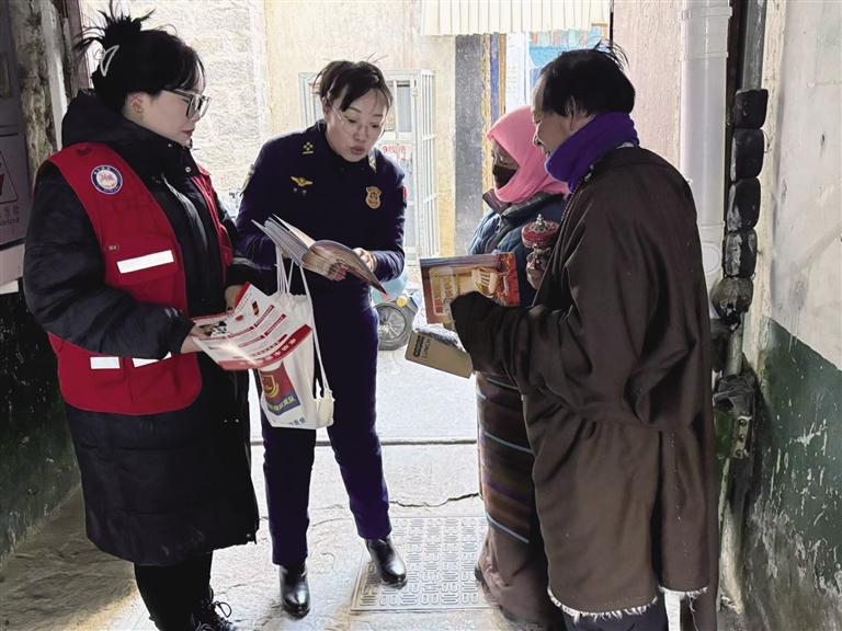 消防宣傳員正在向居民進(jìn)行消防安全知識(shí)宣傳。圖由拉薩市消防救援支隊(duì)提供