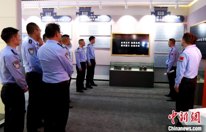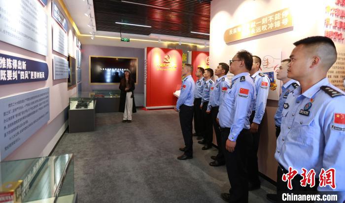 圖為參觀民警正在認(rèn)真聆聽(tīng)講解員解說(shuō)。肖富貴 攝