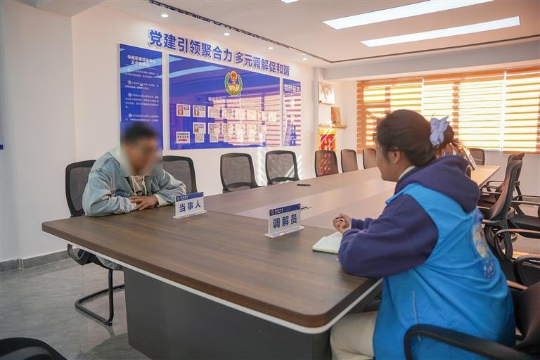 2024年,剛走出大學(xué)校門的旦增卓嘎,因性格柔和、對(duì)“化解矛盾”充滿期冀,看到專職調(diào)解員招聘信息后便毅然報(bào)名?!捌鸪跸氲锰貏e簡(jiǎn)單,覺得只要懂點(diǎn)法律,把雙方說和就行?!被貞浧鸪跞肼毜男膽B(tài),旦增卓嘎笑著說。