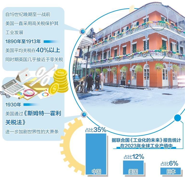 19世紀(jì)70年代后,保護(hù)性關(guān)稅逐漸成為國(guó)際政治的重要工具。美國(guó)自19世紀(jì)晚期到一戰(zhàn)之前一直采用高關(guān)稅保護(hù)自己的工業(yè)發(fā)展。1890年至1913年,美國(guó)的平均關(guān)稅在40%以上,而同時(shí)期其他主要工業(yè)國(guó)的關(guān)稅都很低,當(dāng)時(shí)的世界經(jīng)濟(jì)霸主英國(guó)更是接近于零關(guān)稅。1930年美國(guó)通過了《斯姆特—霍利關(guān)稅法》,引發(fā)其他國(guó)家針鋒相對(duì)的報(bào)復(fù),進(jìn)一步加劇了世界性的大蕭條。20世紀(jì)80年代,激烈的美日貿(mào)易摩擦后簽署“廣場(chǎng)協(xié)議”,被大多數(shù)學(xué)者認(rèn)為是導(dǎo)致日本后來長(zhǎng)期經(jīng)濟(jì)低迷的主要原因。在這些案例中,作為制造業(yè)大國(guó)的美國(guó)制造貿(mào)易摩擦是為了與他國(guó)競(jìng)爭(zhēng),保護(hù)本國(guó)相關(guān)產(chǎn)業(yè),避免在競(jìng)爭(zhēng)中被外國(guó)企業(yè)擊敗。