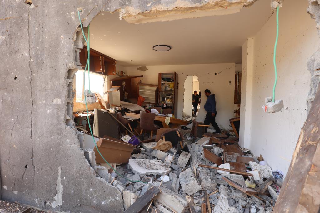 3月13日,人們?cè)谝陨斜辈砍擎?zhèn)扎爾齊爾一處遭伊朗導(dǎo)彈襲擊的地點(diǎn)查看。新華社發(fā)(吉爾·科恩·馬根攝)