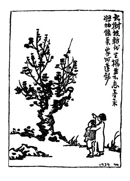 圖為豐子愷多次在畫(huà)作中將中國(guó)比作大樹(shù),其中一件題詩(shī):“大樹(shù)被斬伐,生機(jī)并不息。春來(lái)怒抽枝,氣象何蓬勃!” 圖片來(lái)源:北京日?qǐng)?bào)