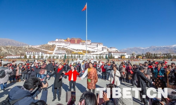 布達拉宮廣場上演快閃祝福祖國70華誕