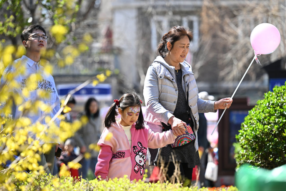 3月30日,游客在天津市五大道風(fēng)景區(qū)游玩。新華社記者 趙子碩 攝