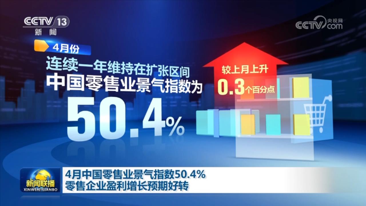 中國商業(yè)聯(lián)合會(huì)最新發(fā)布的中國零售業(yè)景氣指數(shù)顯示,4月份,中國零售業(yè)景氣指數(shù)為50.4%,較上月上升0.3個(gè)百分點(diǎn),連續(xù)一年維持在擴(kuò)張區(qū)間。從行業(yè)分類看,商品經(jīng)營類指數(shù)、租賃經(jīng)營類指數(shù)、電商經(jīng)營類指數(shù),較上月均有上升。
