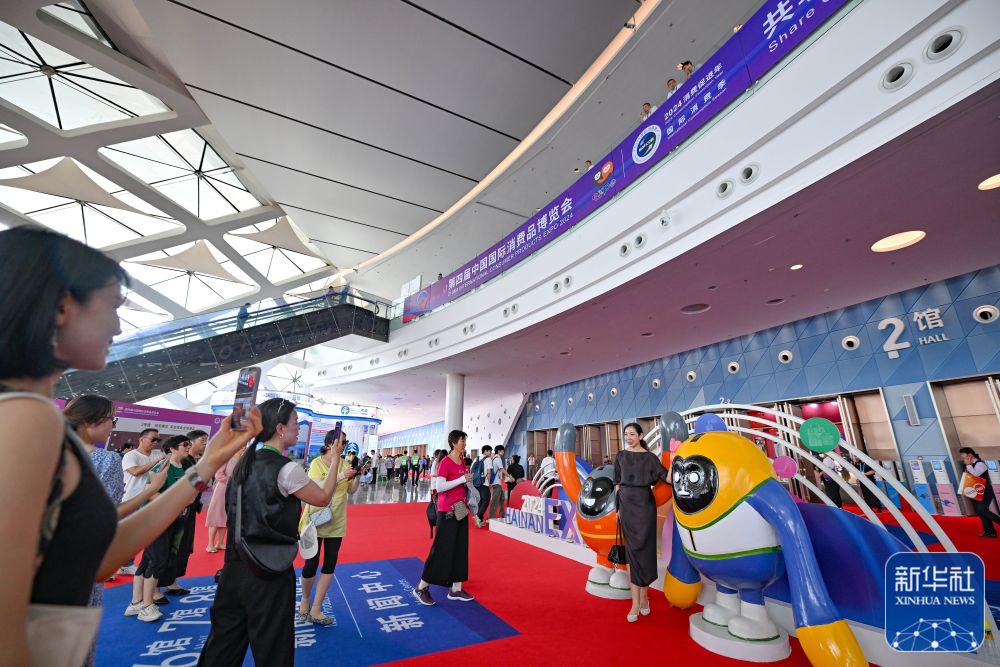 觀(guān)眾在第四屆消博會(huì)現(xiàn)場(chǎng)拍照留念。新華社記者王楚天 攝