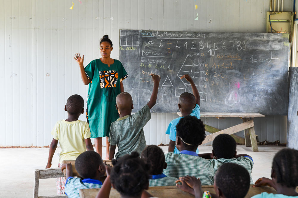 7月10日,在喀麥隆南部大區(qū)克里比市,老師和學(xué)生參加恩杜馬萊雙語(yǔ)學(xué)校暑期活動(dòng)。新華社發(fā)(科普索攝)
