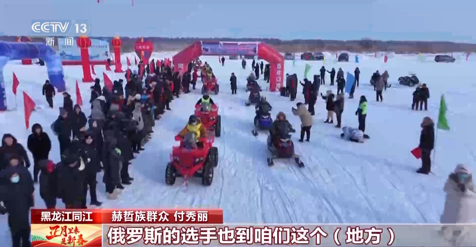 赫哲族群眾 付秀麗:不光是我們自己喜歡玩兒,俄羅斯選手也到咱們這參加比賽,騎我們生產(chǎn)的雪地摩托車(chē),感覺(jué)特別颯。