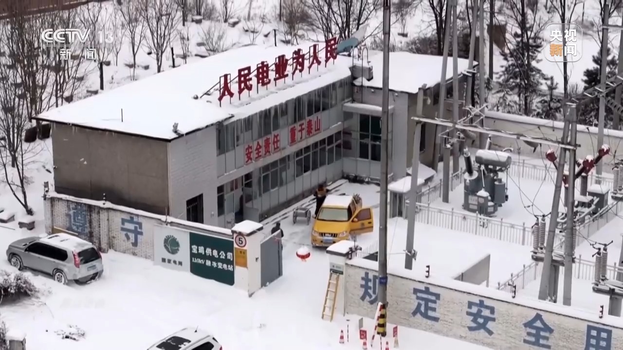 伴著2025春節(jié)的來臨,一場降雪為秦嶺披上銀裝。國網(wǎng)寶雞供電公司110千伏秦嶺融冰變電站,一臺安裝在輸電鐵塔上的監(jiān)測設備發(fā)生故障,工作人員正在商討對策。