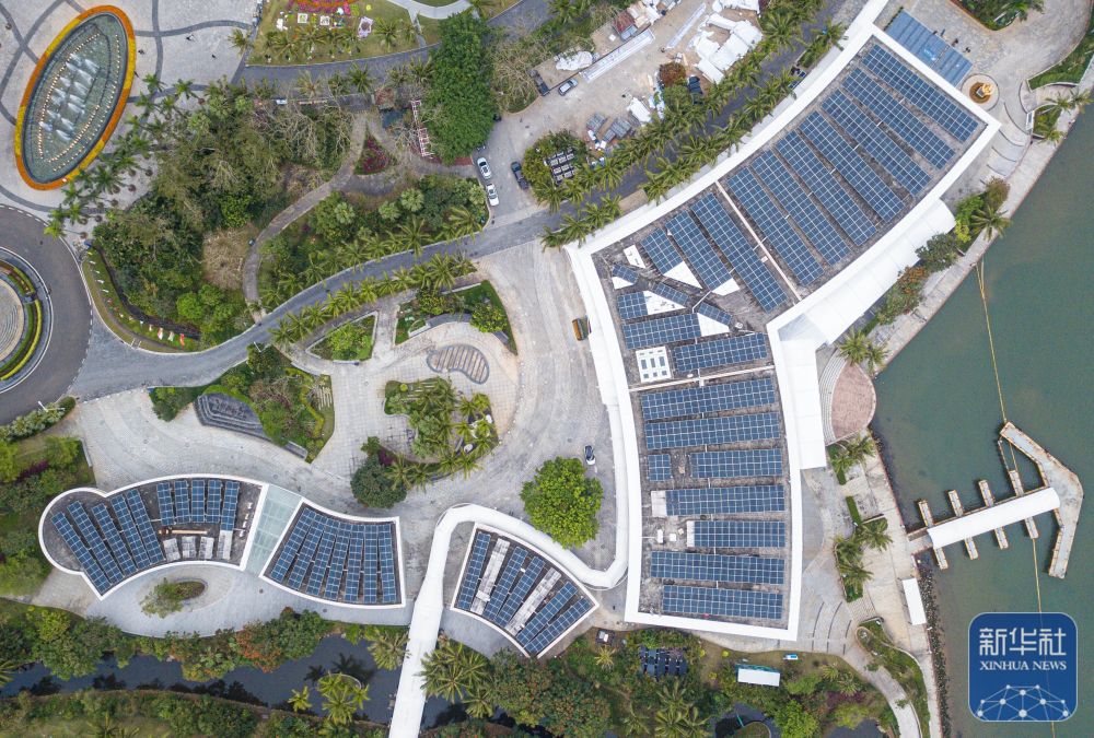 ↑ 這是在博鰲零碳示范區(qū)拍攝的博鰲亞洲論壇新聞中心及配樓屋頂?shù)墓夥O備(無人機照片,3月16日攝)。