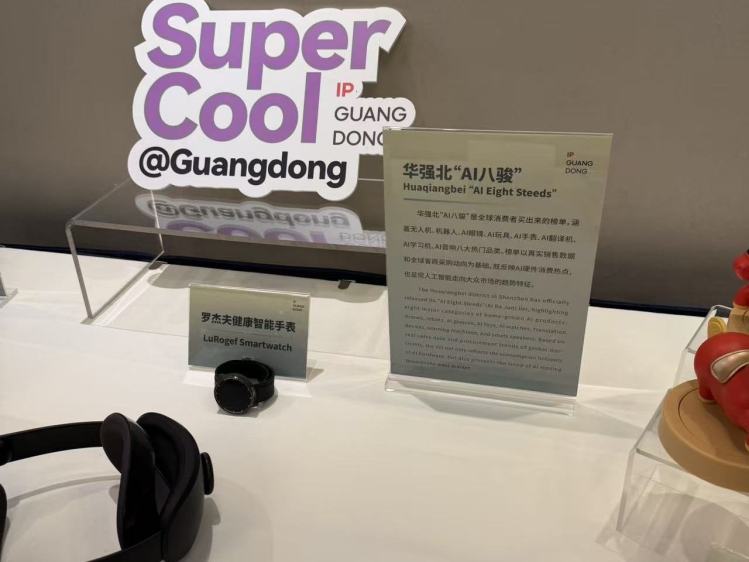 在廣東代表團(tuán)開放團(tuán)組活動(dòng)會(huì)場外的走廊里,當(dāng)?shù)囟嗉移髽I(yè)展示廣東特色美食,以及眾多深受全球消費(fèi)者喜愛的智能產(chǎn)品。其中就有被譽(yù)為“華強(qiáng)北AI八駿"的AI產(chǎn)品,這是由全球消費(fèi)者實(shí)打?qū)崱百I出來”的榜單好物,涵蓋無人機(jī)、機(jī)器人、AI眼鏡、AI學(xué)習(xí)機(jī)與音響等,此外還有人形機(jī)器人手辦、AI吉他、AI娃娃等最新科技產(chǎn)品,以眼見為實(shí)的產(chǎn)品展現(xiàn)廣東經(jīng)濟(jì)發(fā)展蓬勃活力,吸引大批外國記者拍照、采訪與試用。