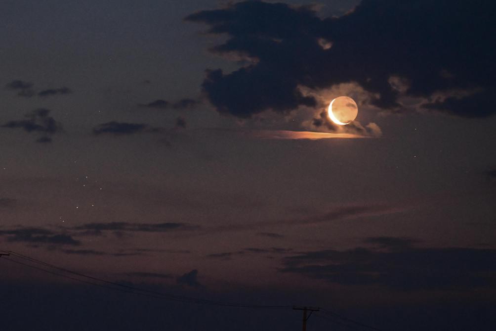 “新月抱舊月”是一種由地球反射太陽(yáng)光至月球暗面形成的天文現(xiàn)象,表現(xiàn)為明亮月牙與暗淡月面同時(shí)可見(jiàn),這種有趣的天文現(xiàn)象也被稱(chēng)為地照。