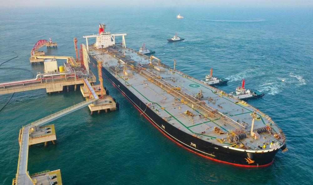 2025年12月18日,一艘裝載著石化原輔料的外籍船舶泊入位于海南省儋州市的國投洋浦油儲碼頭30萬噸級原油泊位(無人機照片)。當(dāng)日,海南自由貿(mào)易港正式啟動全島封關(guān)。新華社記者 郭程 攝