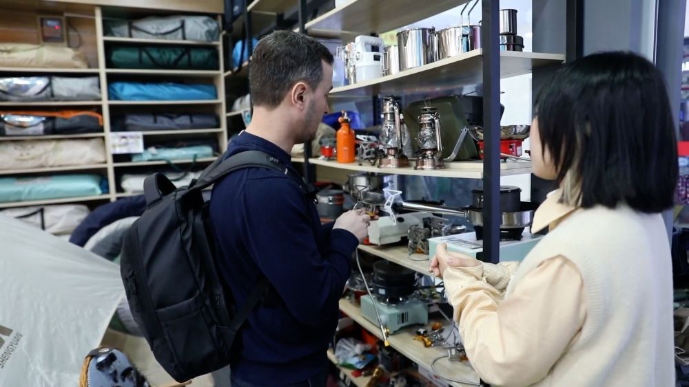 在義烏國際商貿城,帳篷、桌椅、睡袋等戶外用品琳瑯滿目,吸引眾多采購商前來選購,戶外用品市場迎來春日熱潮。