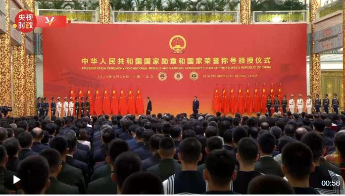 中華人民共和國國家勛章和國家榮譽稱號頒授儀式9月29日上午10時在人民大會堂隆重舉行。中共中央總書記、國家主席、中央軍委主席習近平向“人民教育家”國家榮譽稱號獲得者張晉藩頒授獎章。