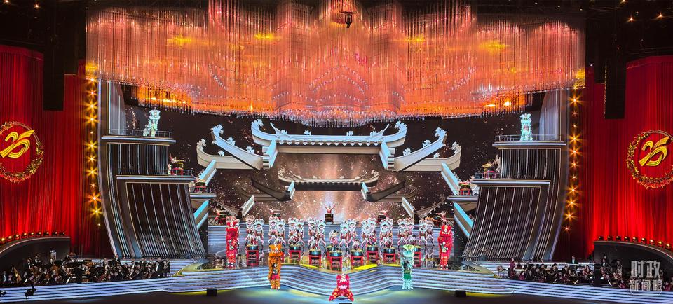 △慶祝澳門回歸祖國(guó)25周年文藝晚會(huì)現(xiàn)場(chǎng)燈光璀璨,歡樂喜慶。(總臺(tái)央視記者許永松拍攝)
