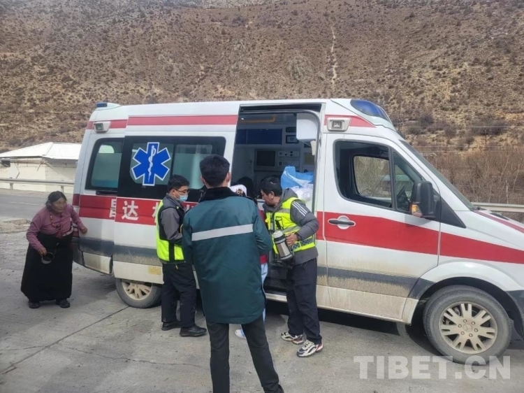“沒事的,來,深呼吸。我們在去醫(yī)院的路上,昌都市人民醫(yī)院的急救車也正在趕過來,不用擔心?!彪S車的陳祿彥醫(yī)生不停安慰著嘎吉,并不停觀察著她的情況。