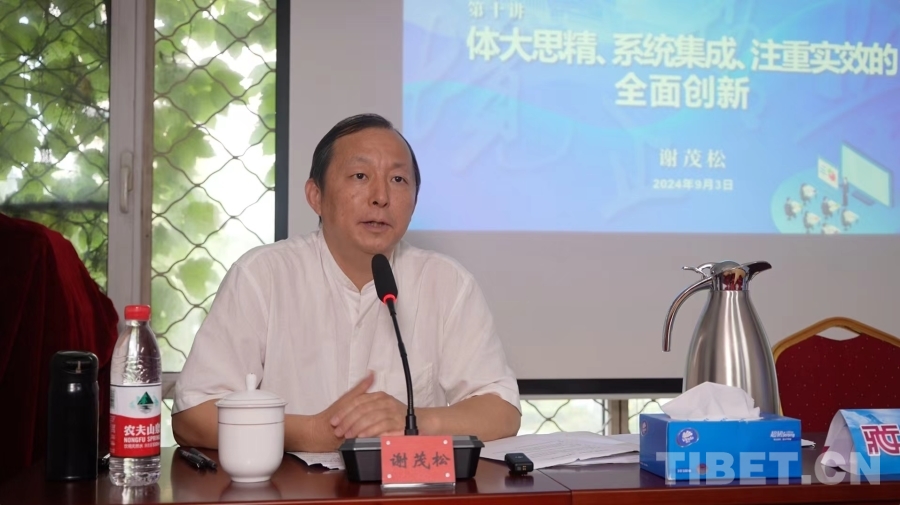 9月3日下午,國家創(chuàng)新與發(fā)展戰(zhàn)略研究會資深研究員,中國文明和中國道路研究中心主任,清華大學(xué)國家戰(zhàn)略研究院資深研究員謝茂松應(yīng)邀到中國西藏信息中心,做客“榮豐大講堂”,以《體大思精、系統(tǒng)集成、注重實(shí)效的全面創(chuàng)制》為題,分享其學(xué)習(xí)黨的二十屆三中全會精神的體會和認(rèn)識。