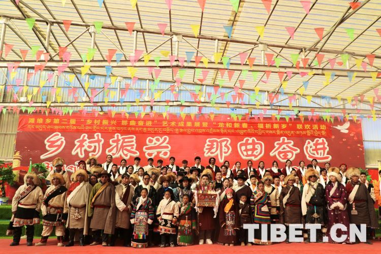 中國西藏網(wǎng)訊 2月10日,中國西藏信息中心“新春走基層”青藏線采訪組一行,來到西藏自治區(qū)那曲市安多縣灘堆鄉(xiāng),適逢當(dāng)?shù)卦谂e辦灘堆鄉(xiāng)第二屆“鄉(xiāng)村振興 那曲奮進(jìn)”藝術(shù)成果展暨“龍和新春、福祈新歲”聯(lián)歡活動。采訪組一行來到鄉(xiāng)政府對面的灘堆鄉(xiāng)文化站,記者在現(xiàn)場看到許多穿著具有當(dāng)?shù)孛褡逄厣椀娜嗽诖司奂T诤闷嫘牡尿?qū)使下,經(jīng)詢問當(dāng)?shù)馗刹坎胖?,為喜?024春節(jié)和藏歷新年,感激黨和國家的關(guān)心關(guān)懷,歌頌如今來之不易的幸福生活,鄉(xiāng)村文藝隊(duì)特此精心準(zhǔn)備了文藝節(jié)目,以嶄新的面貌和昂揚(yáng)的精神展現(xiàn)新時(shí)代牧民群眾的精神風(fēng)貌和幸福生活。