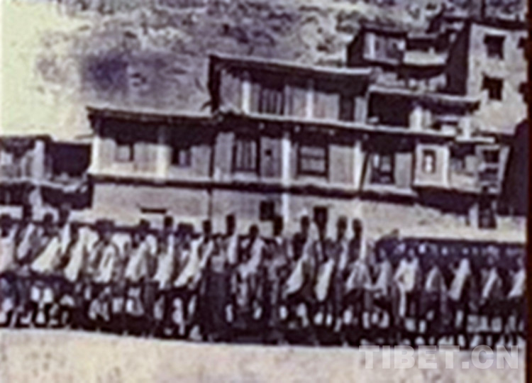 圖為1919年德格土司德嘎的父親繼位時(shí)間30位堆果(大頭人)合影。圖片翻拍于德格縣紀(jì)念館。