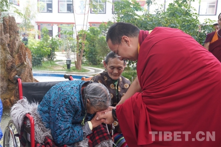 十一世班禪在參觀阿里地區(qū)“雙集中”供(收)養(yǎng)中心時(shí),對(duì)工作人員動(dòng)情地說(shuō)道:“護(hù)理照顧老人是一件繁瑣麻煩的工作,但我希望你們克服困難,一要提高社會(huì)文明素質(zhì),弘揚(yáng)好中華民族尊老愛幼的優(yōu)良傳統(tǒng);二要把服務(wù)老人當(dāng)作一個(gè)為民服務(wù),為自己積德的高尚事業(yè)。一心一意為老人們服務(wù),把黨的光輝、黨的好政策完全徹底落實(shí)在老人們的身上,讓他們感受到黨的溫暖和關(guān)懷?!?/p>