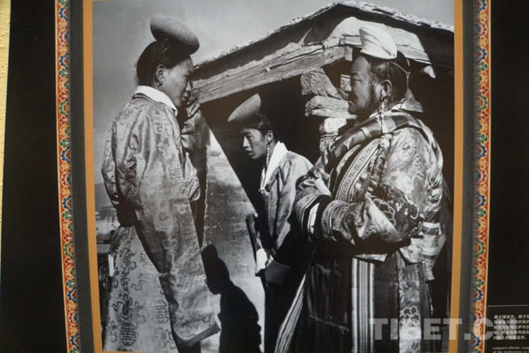 圖為西藏地方政府的貴族官員,在當(dāng)時(shí)布達(dá)拉宮廣場歡慶藏歷新年。左起依次為:先喀?居美多吉、達(dá)賴?yán)锏目偣芗摇煽安?、柳?土登塔巴。 攝影:陳宗烈 翻拍:孫健