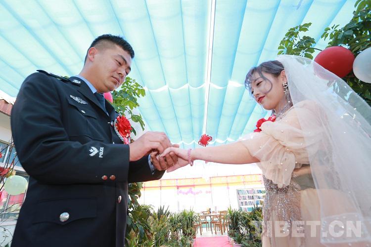 “今天能在警營里完成婚禮,非常的激動。結(jié)婚是女人一生中最幸福的時刻,非常感謝單位的領(lǐng)導(dǎo)能給我們這樣的機會,讓我倆一起度過人生中最幸福的時刻。這次的婚禮非常的有意義,將是我們一生中最寶貴的回憶,警營讓我成為最美麗的新娘?!毙履锿鯊溺鴾I激動地說。(中國西藏網(wǎng) 通訊員/張拴根 記者/王佳豪)