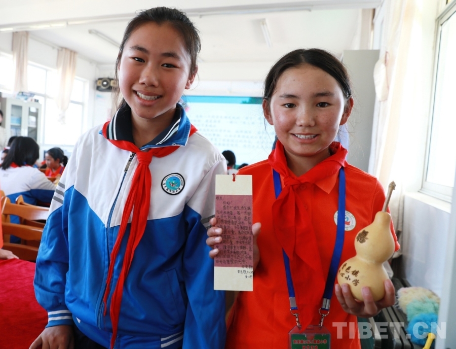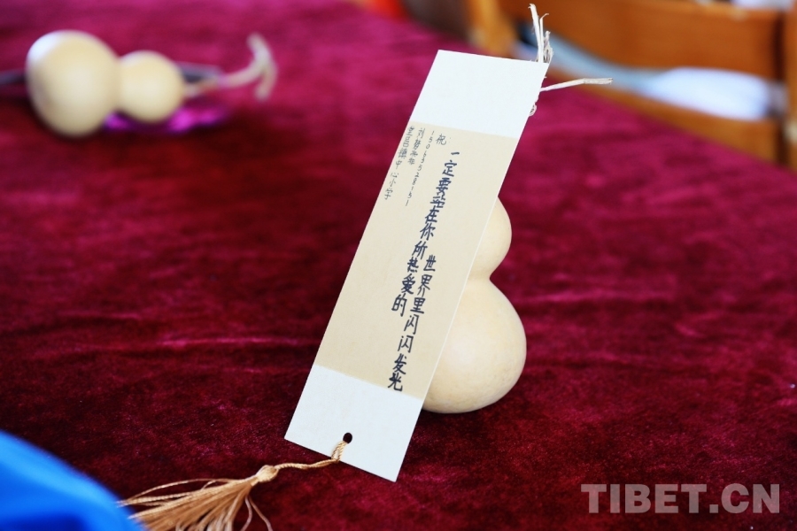圖為山東聊城堂邑鎮(zhèn)中心小學的孩子們向西藏阿里噶爾縣孔繁森小學的小伙伴贈送當地特色的葫蘆和祝??ㄆC恳粡埧ㄆ隙加泻⒆觽冇H手寫下的最想對遠方的小伙伴說的祝福語、心里話。攝影:劉莉