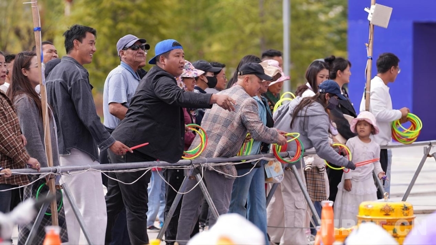 圖為10月2日,市民群眾及游客現(xiàn)場(chǎng)參與各類(lèi)趣味互動(dòng)活動(dòng)
