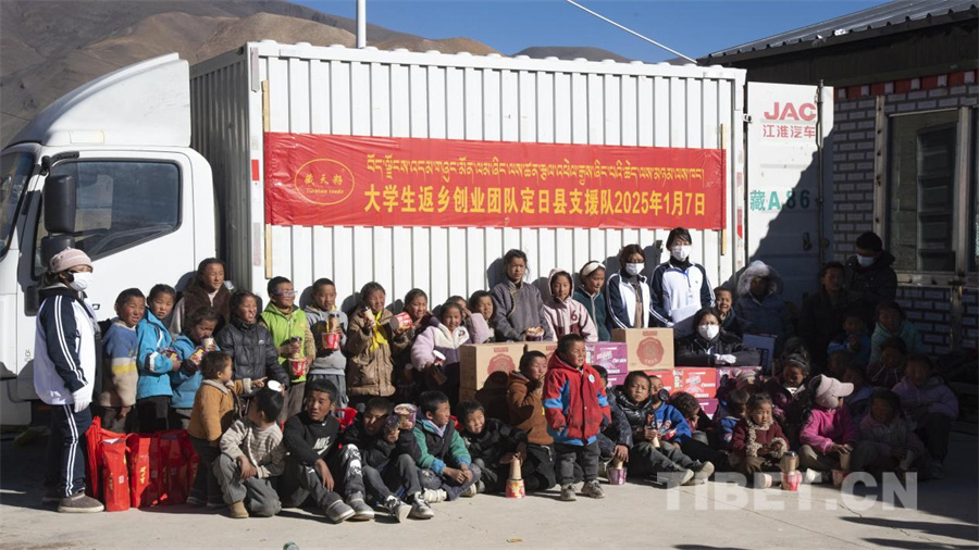 圖為拉薩市當雄縣烏瑪塘鄉(xiāng)巴嘎村“00后”返鄉(xiāng)創(chuàng)業(yè)大學生自發(fā)赴定日縣捐贈物資(攝于2025年1月8日) 攝影:趙振宇