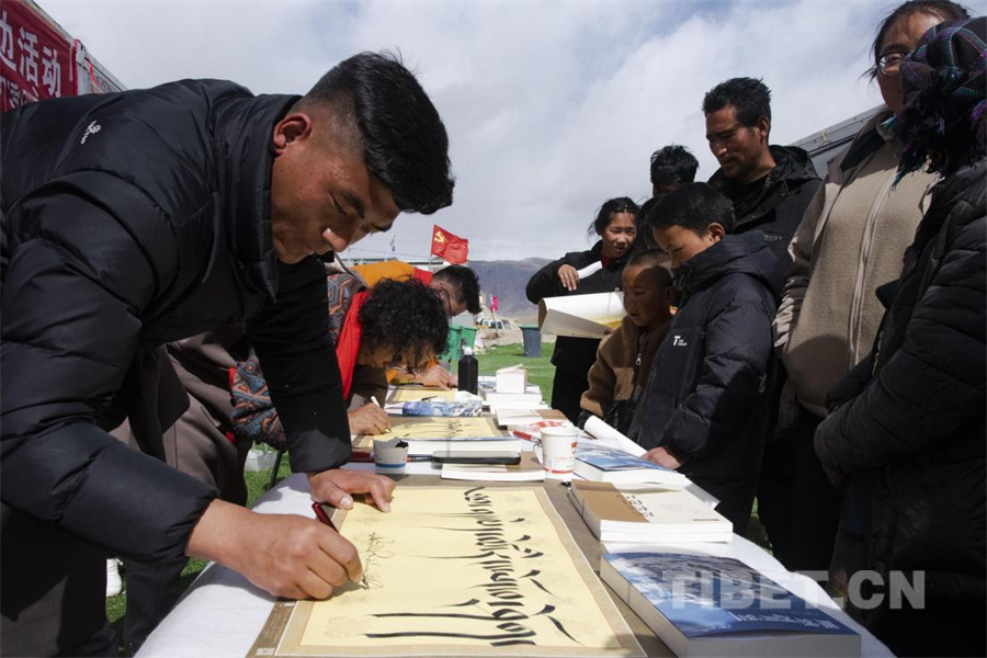 圖為藏歷新年之際,定結縣邀請日喀則市文聯(lián)書法家為受災群眾送上藏歷新年祝福(攝于2025年3月1日)攝影:趙振宇