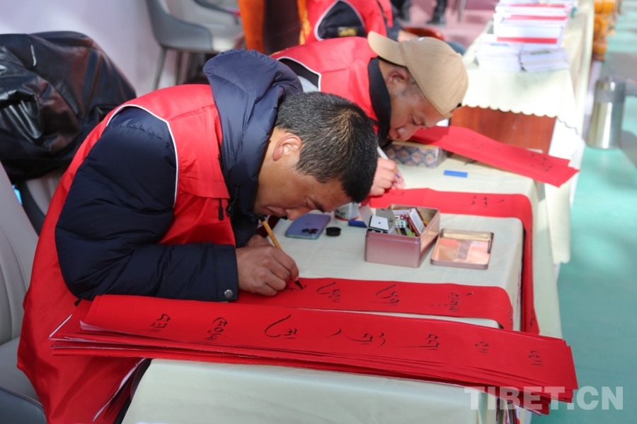 溫暖物資發(fā)放區(qū),保暖衣物、生活用品、學(xué)習(xí)用品等陸續(xù)送到群眾手中。書法老師現(xiàn)場(chǎng)揮毫,書寫一幅幅寓意吉祥的藏文春聯(lián)贈(zèng)予鄉(xiāng)親,為即將到來(lái)的新春增添濃濃年味與文化氣息。