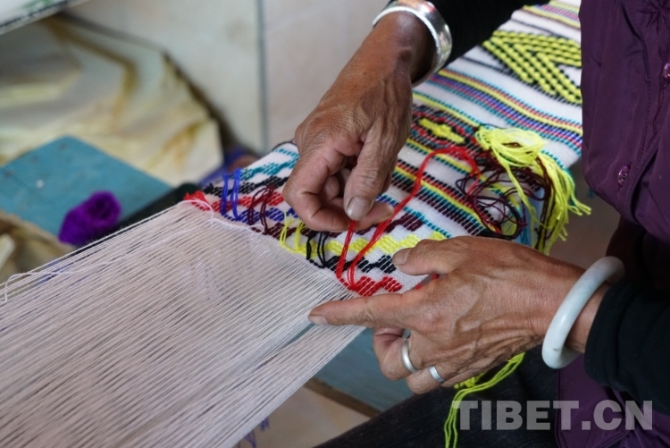 圖為阿七獨支瑪展示傳統(tǒng)手工紡織