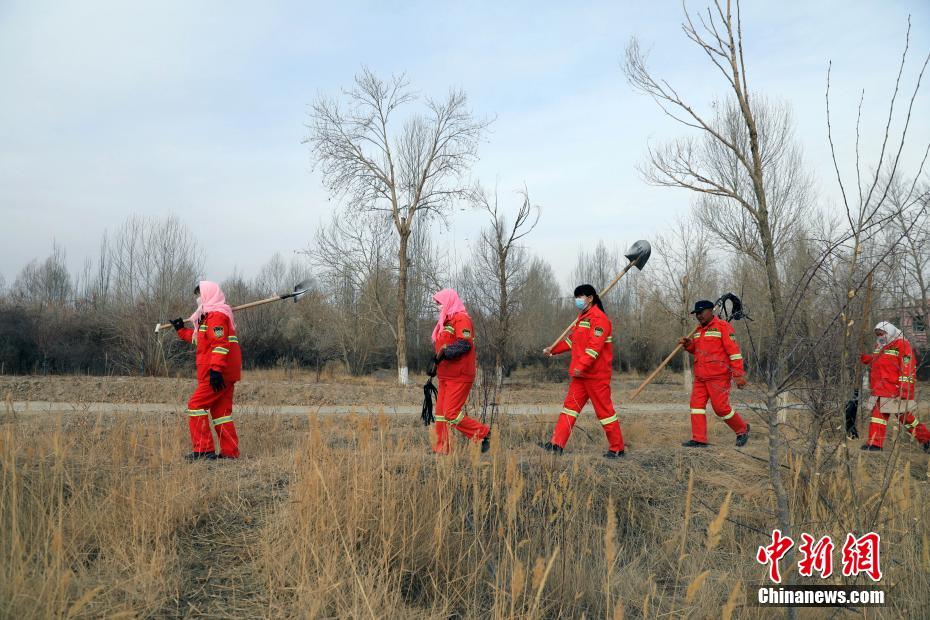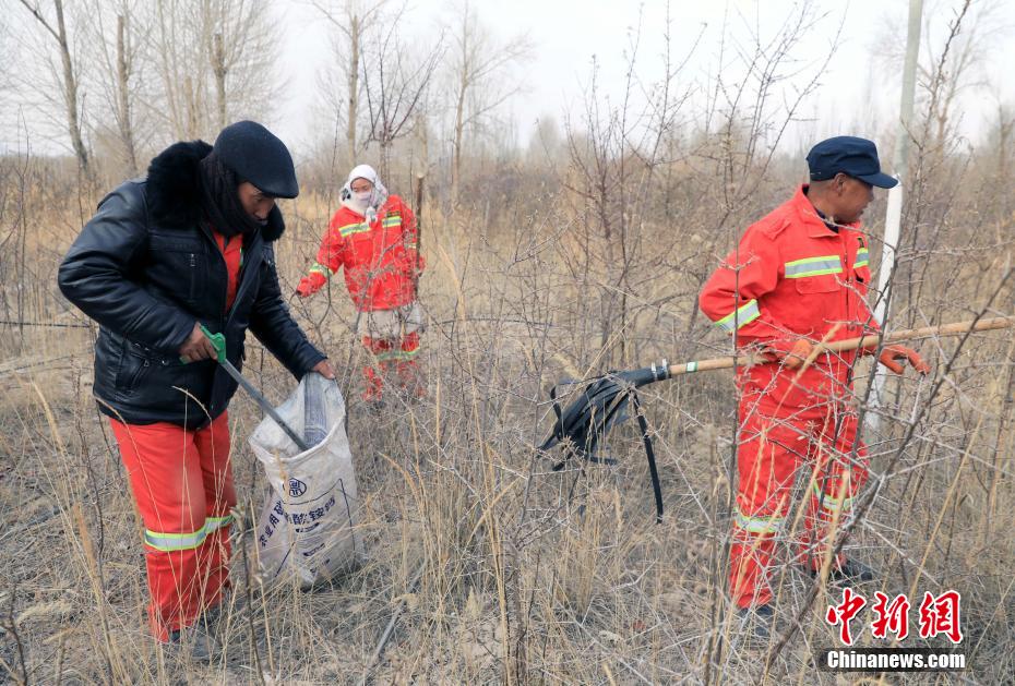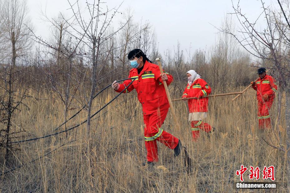 12月9日,護林員在千畝林中心林地?fù)焓袄?。中新社記?王磊 攝
