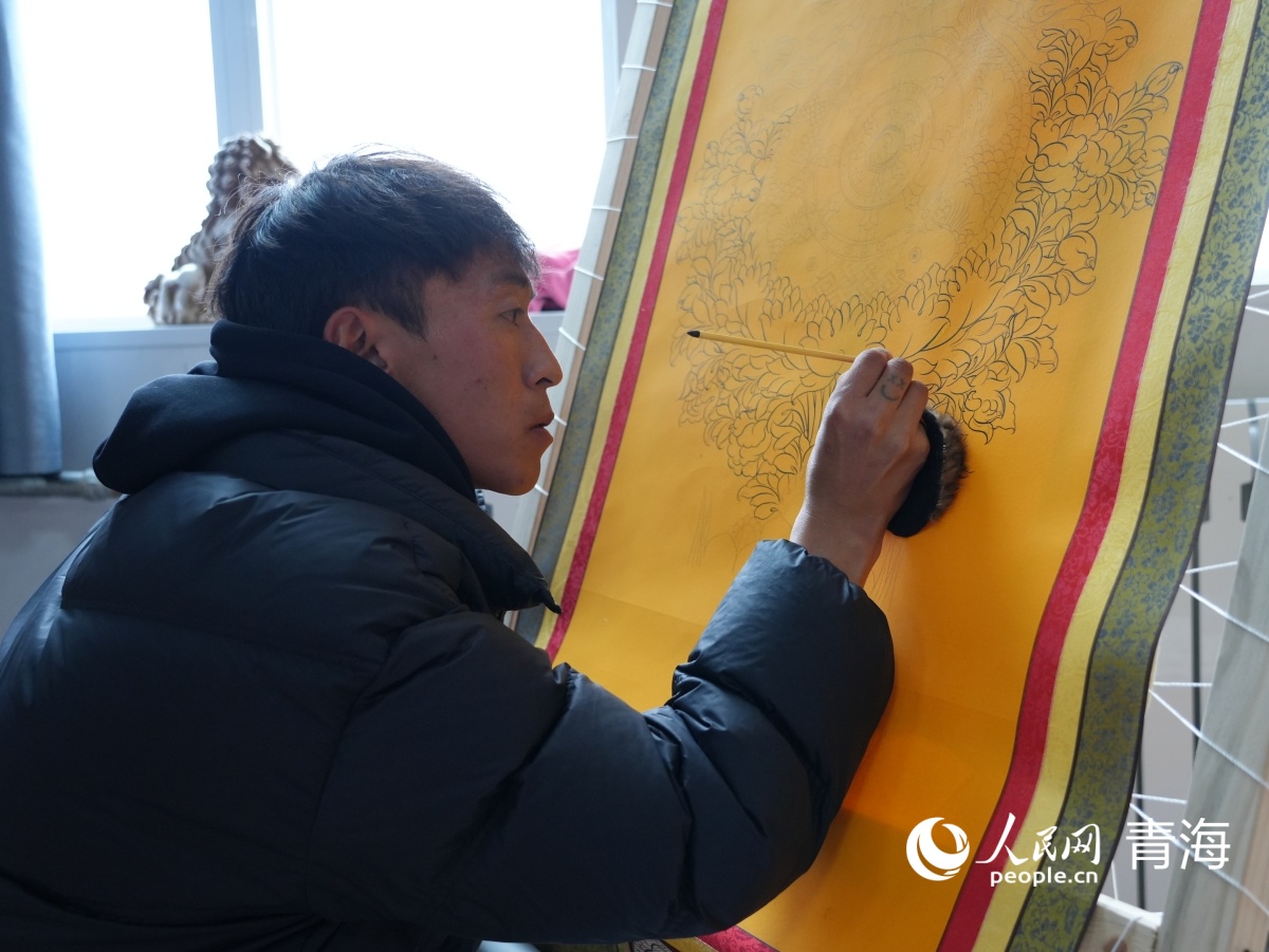 唐卡工藝美術(shù)實(shí)訓(xùn)。人民網(wǎng)記者 楊啟紅 攝