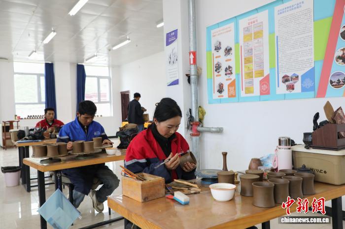 圖為匠人們正在制作班瑪黑陶。中新社記者 馬銘言 攝