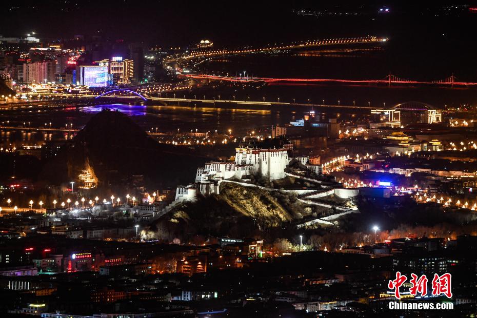 12月24日晚,西藏自治區(qū)拉薩市燈光璀璨,布達拉宮夜景迷人。中新社記者 貢嘎來松 攝