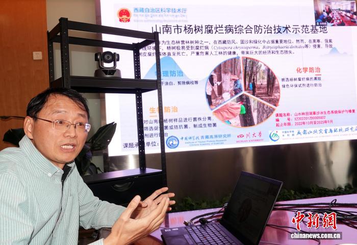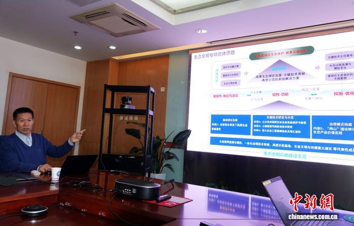 梁爾源研究員介紹青藏高原植樹造林相關(guān)研究整體進展情況。中新網(wǎng)記者 孫自法 攝