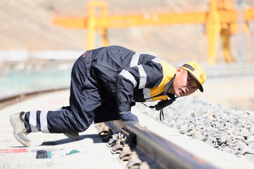 在海拔約3850米的日喀則西站,記者跟隨車間線路作業(yè)人員進(jìn)行日常巡檢。施工維修的“窗口期”只有3個(gè)小時(shí),作業(yè)人員徒步沿鋼軌行走3000多米,邊檢查、邊處理,不時(shí)踢開軌枕上的石碴?!斑@樣一年下來,走爛好幾雙勞保鞋?!比湛t線路工區(qū)工長索朗多布杰說。