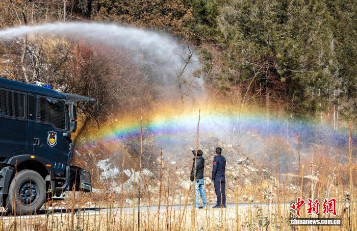 圖為西藏亞東出入境邊防檢查站開展灑水增濕現(xiàn)場。李錦輝 攝