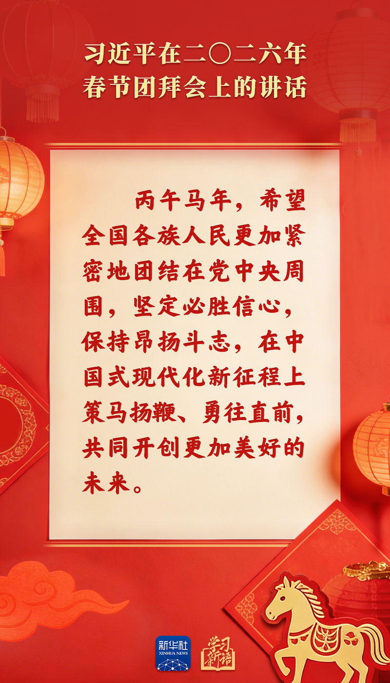 辭舊歲,賀新春。中共中央、國務(wù)院14日上午在人民大會堂舉行2026年春節(jié)團拜會。習(xí)近平總書記發(fā)表講話,代表黨中央和國務(wù)院,向全國各族人民,向香港特別行政區(qū)同胞、澳門特別行政區(qū)同胞、臺灣同胞和海外僑胞拜年。