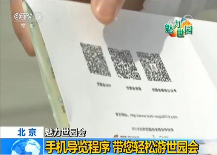 央視記者 張偉澤:每一位進(jìn)入到園區(qū)的游客都可以領(lǐng)到這么一份導(dǎo)覽圖。導(dǎo)覽圖上標(biāo)了很多信息,每一個景點,以及所有電瓶車的位置、餐飲點,還有醫(yī)療點,都在這上面有標(biāo)注。在它的背面還有咱們世園會官方APP,只要用手機掃描這個APP,就可以很輕松地通過手機來游園。