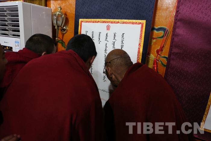 此次活動共征集書法作品80余幅,包含藏文、梵文、漢文、英文,其中藏文書法當(dāng)中又有烏金和烏梅體、草書體和古藏文體等多種書法類型,不僅展現(xiàn)了藏文書法精美多樣的字體和悠久歷史,而且表達(dá)了全寺僧眾深切緬懷大師的至真感情和銘記大師教誨,積極發(fā)揚(yáng)藏傳佛教愛國愛教優(yōu)良傳統(tǒng)的堅定信心。(中國西藏網(wǎng) 記者/索朗加措、趙耀 圖片由扎什倫布寺寺管會提供)