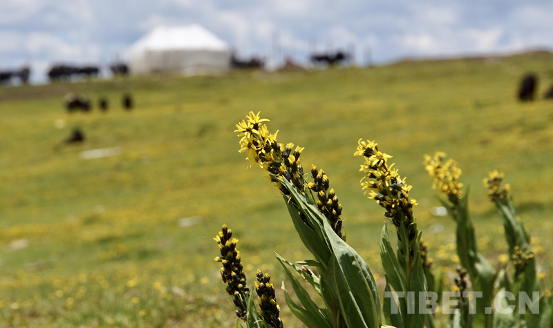 圖為默默開(kāi)放在牧民帳篷附近的小野花